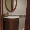 The second bedroom, which can also be rented as a standalone studio unit, features 2 queen sized beds, a large 42” flat screen TV, a sitting/reading area, and access to a private (3rd) porch. The second bedroom includes a kitchenette with small sink, stove top, microwave and refrigerator. The bathroom for this bedroom includes a jacuzzi bath tub, a separate shower area, a separate water closet area, and double sinks.