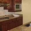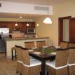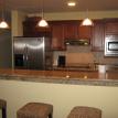 The large living space includes a full sized kitchen with all the amenities of home for making a quick bite to eat or a full multi-course dinner. A square dining table seats 8 comfortably, with additional seating for 3 more at the kitchen bar countertop.