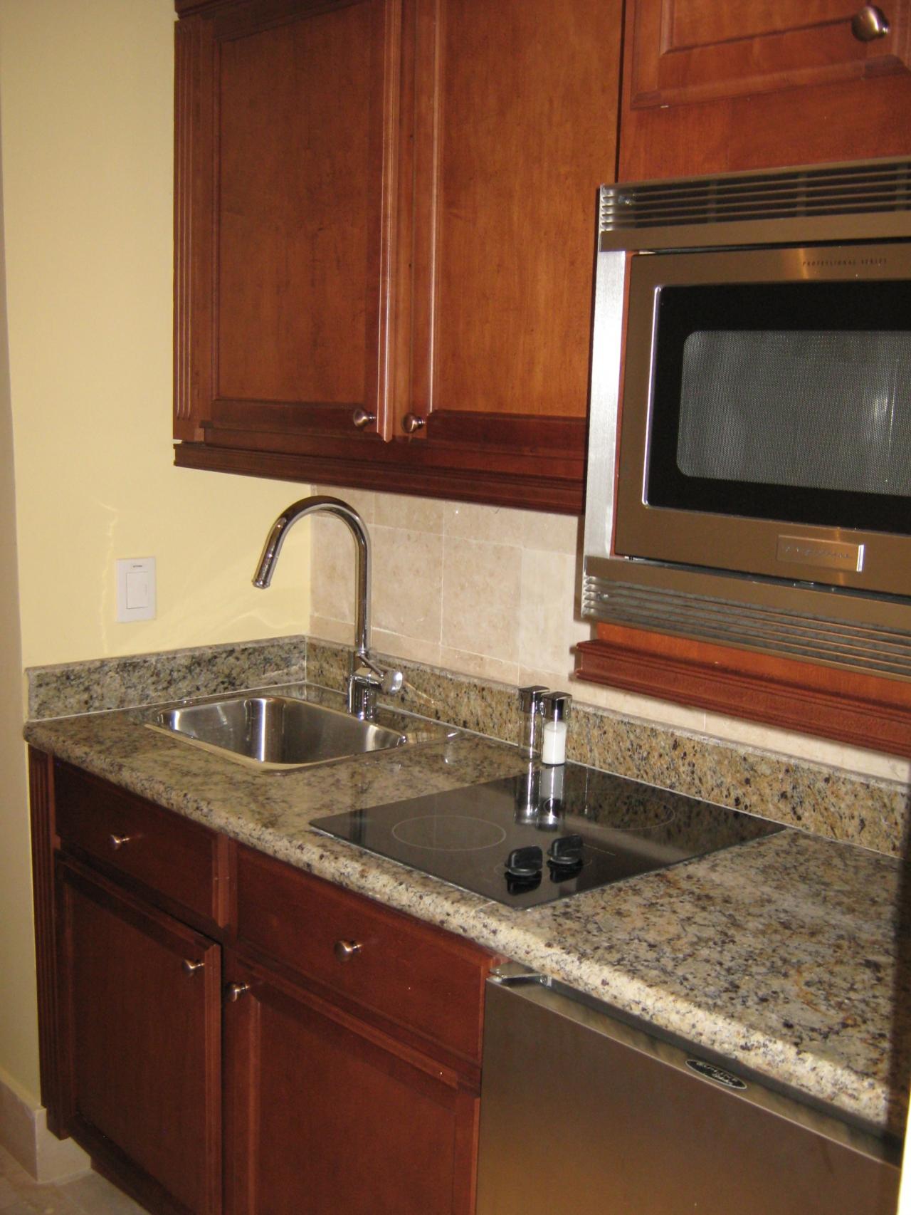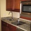 The large living space includes a full sized kitchen with all the amenities of home for making a quick bite to eat or a full multi-course dinner. A square dining table seats 8 comfortably, with additional seating for 3 more at the kitchen bar countertop.